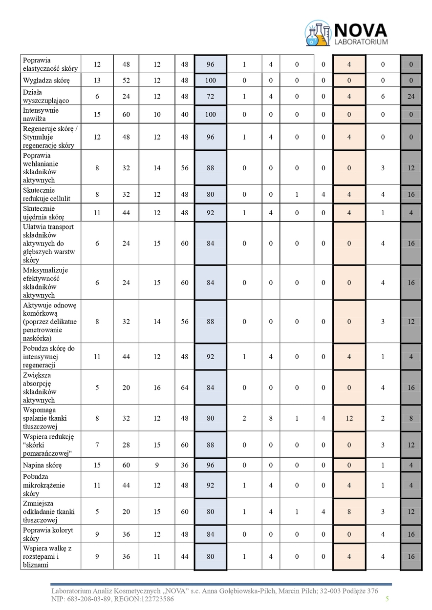 - Centella Asiatica Leaf Extract – wygładza skórę, wspiera redukcję „skórki pomarańczowej”.