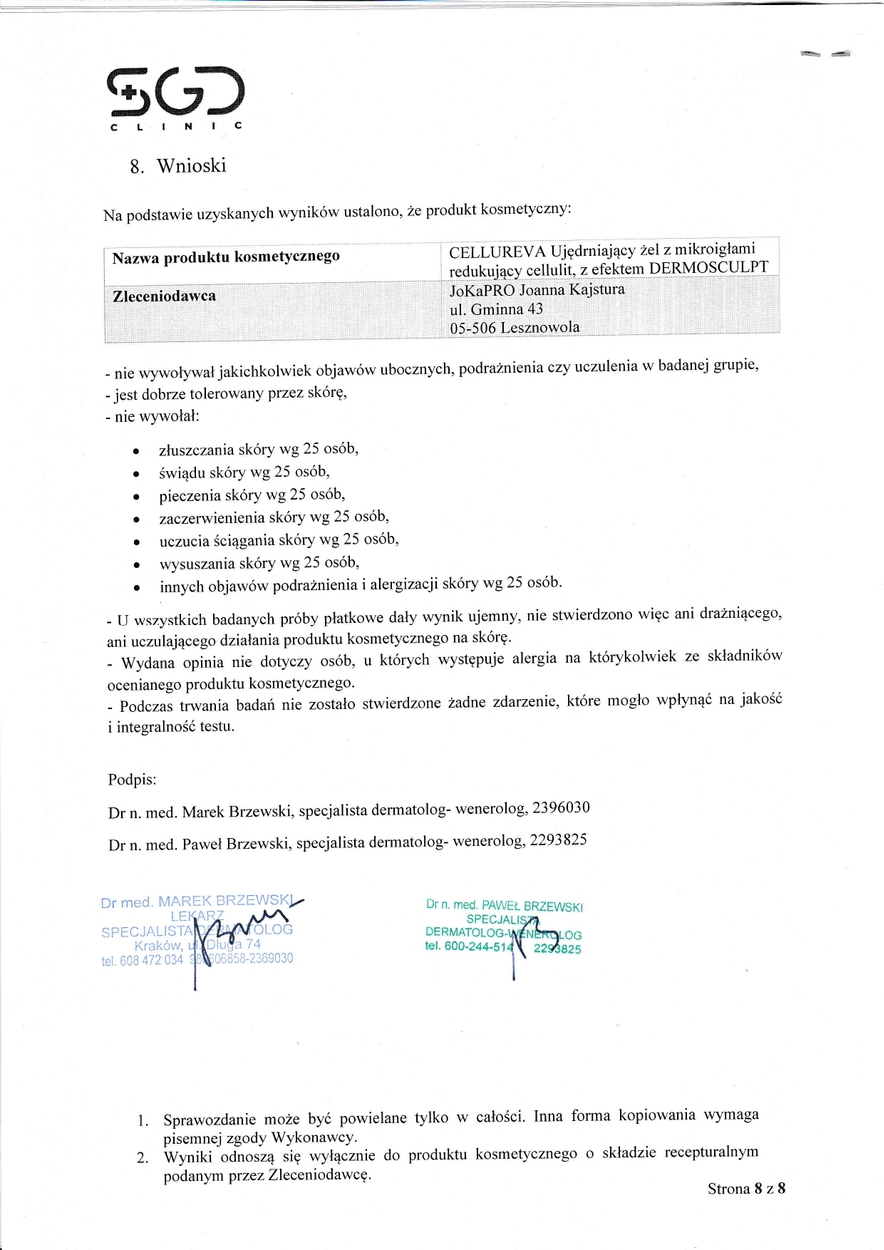 PRZECIWWSKAZANIA do stosowania CELLUREVA DERMOSCULPT